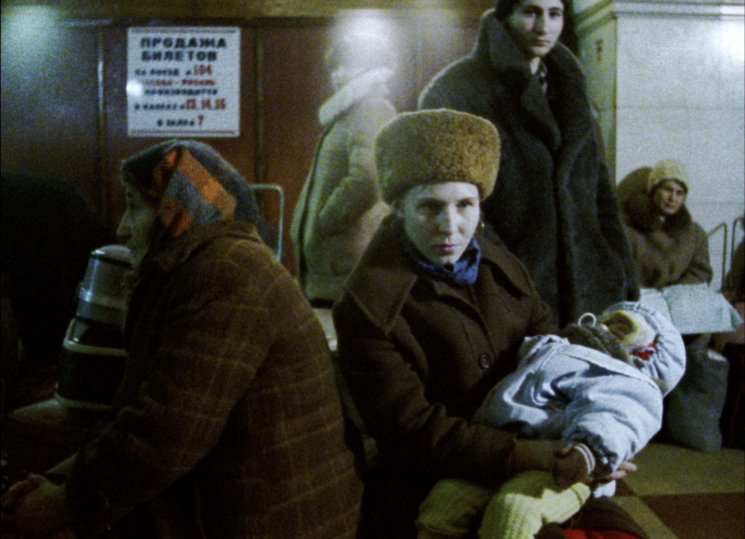 Je me souviens du montage du film D’Est. C’était comme une composition, au sens à la fois musical et plastique du terme. On sculptait dans le temps et l’espace et on cherchait le rythme juste. On échangeait des mots très simples ; on parlait de couleurs, de lumières, de matières, de chocs, de ruptures, de contrastes, de nuit et de jour, d’extérieurs et d’intérieurs, de violence, de douceur, du bruit des pas dans la neige ou de celui des crissements des pneus sur les routes glacées. Quand on regardait les longs travellings sur les visages de gens qui attendent, on parlait de leurs regards, de la lenteur de leurs mouvements, de leurs sourires, de leur beauté ou parfois de leur tristesse. Mais jamais on n’a évoqué ce à quoi ces images nous renvoyaient. On le sentait, mais si on avait cherché à le formuler, cela aurait freiné notre élan, cela aurait alourdi nos gestes. On savait sans savoir, et ça nous allait. Ce n’est qu’un an plus tard, pendant le montage de l’installation D’Est au bord de la fiction que les mots sont apparus, en échos aux images… Ces mots sont devenus ceux du 25ème écran de l’installation, dits par Chantal, dont voici un extrait :