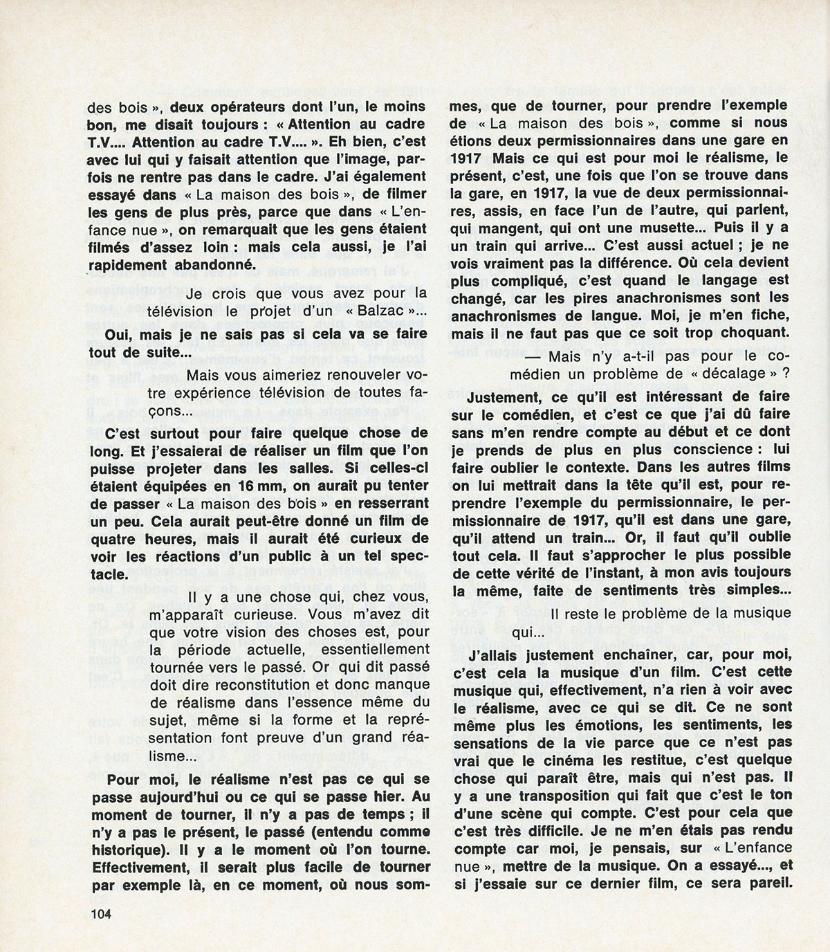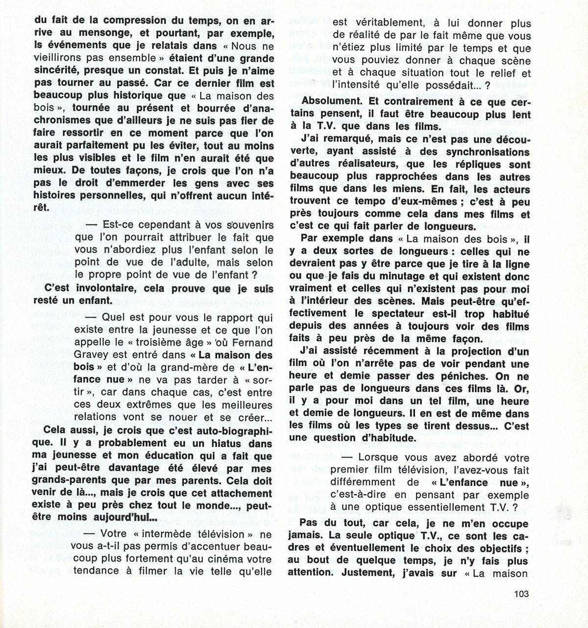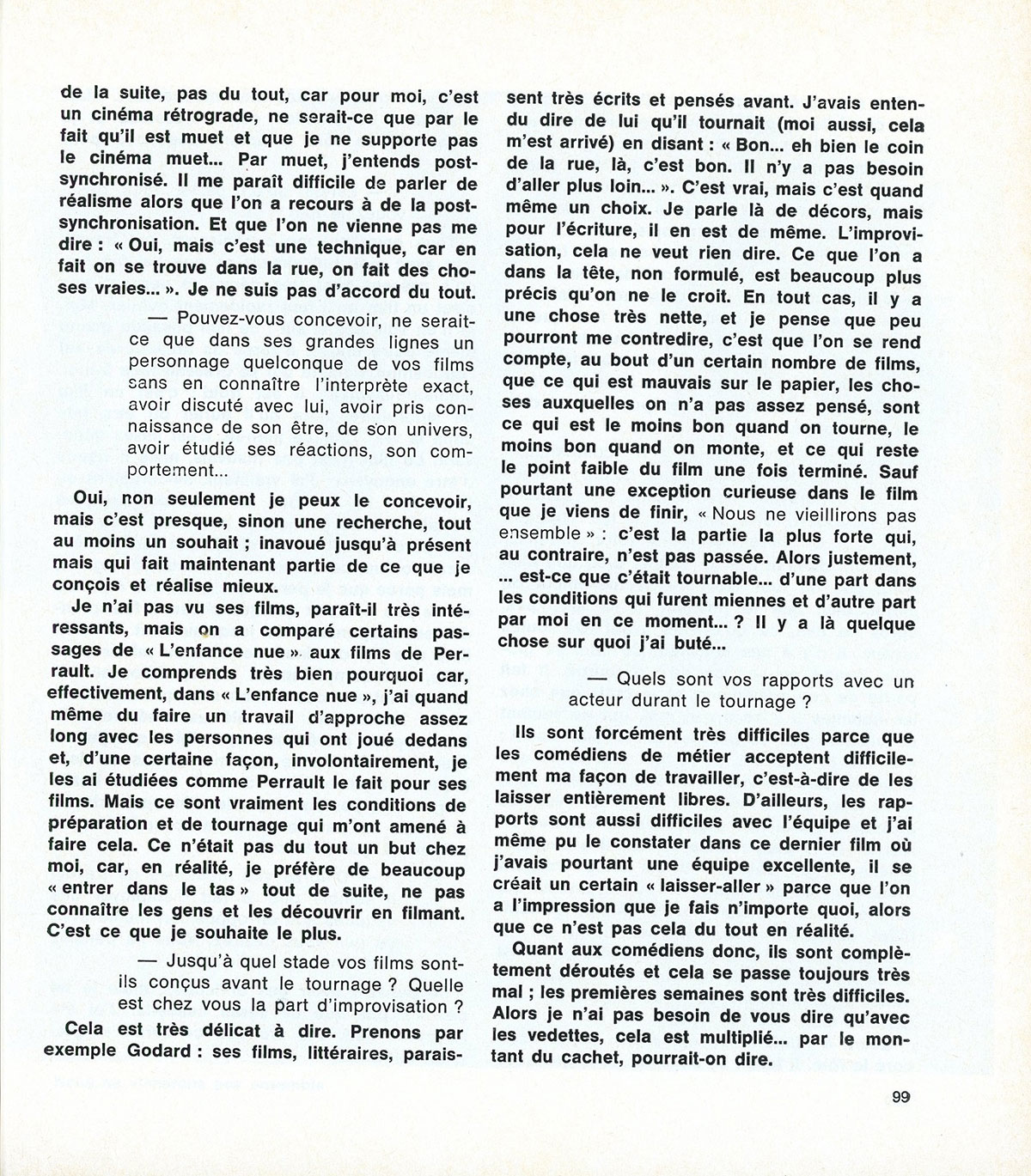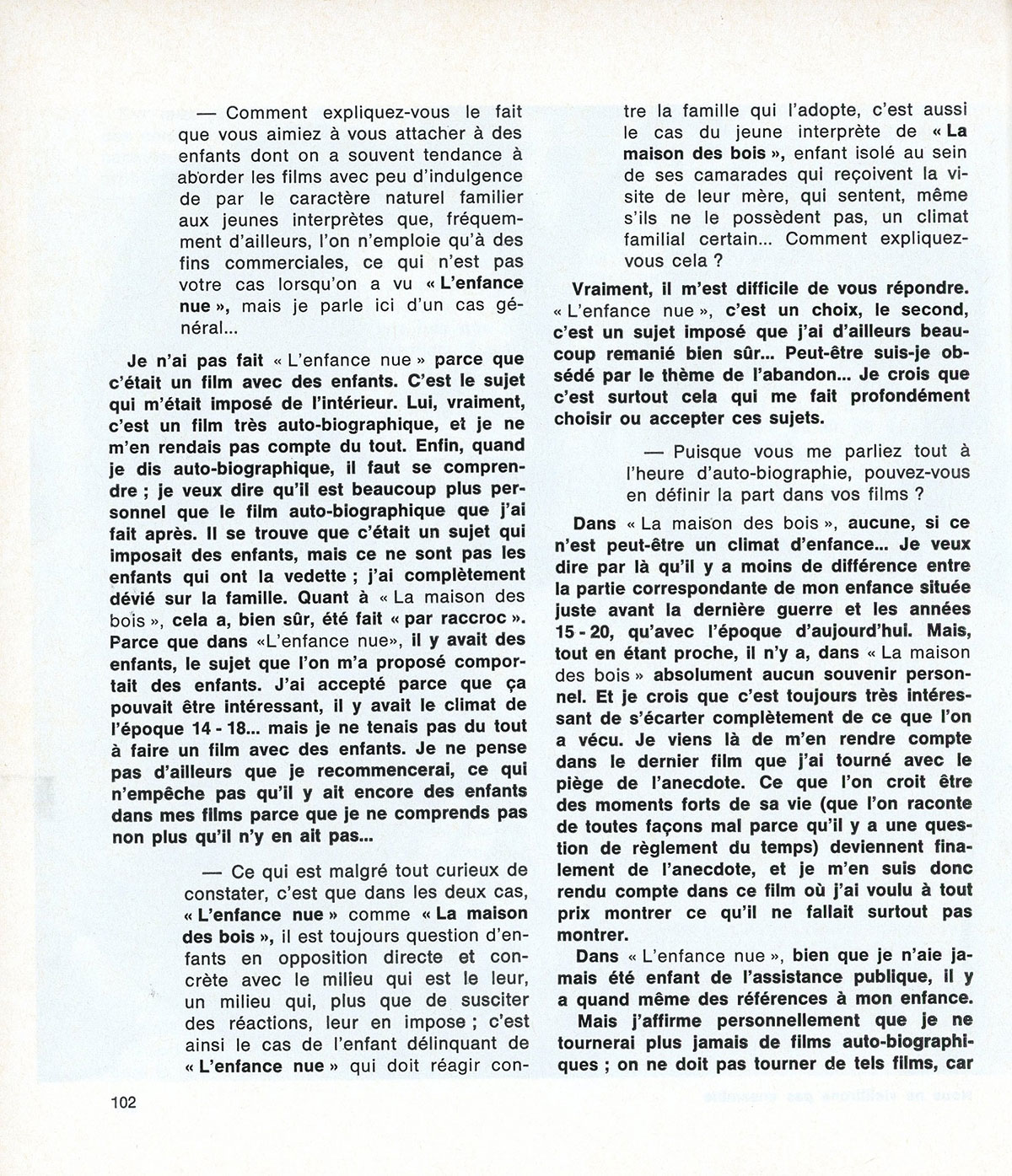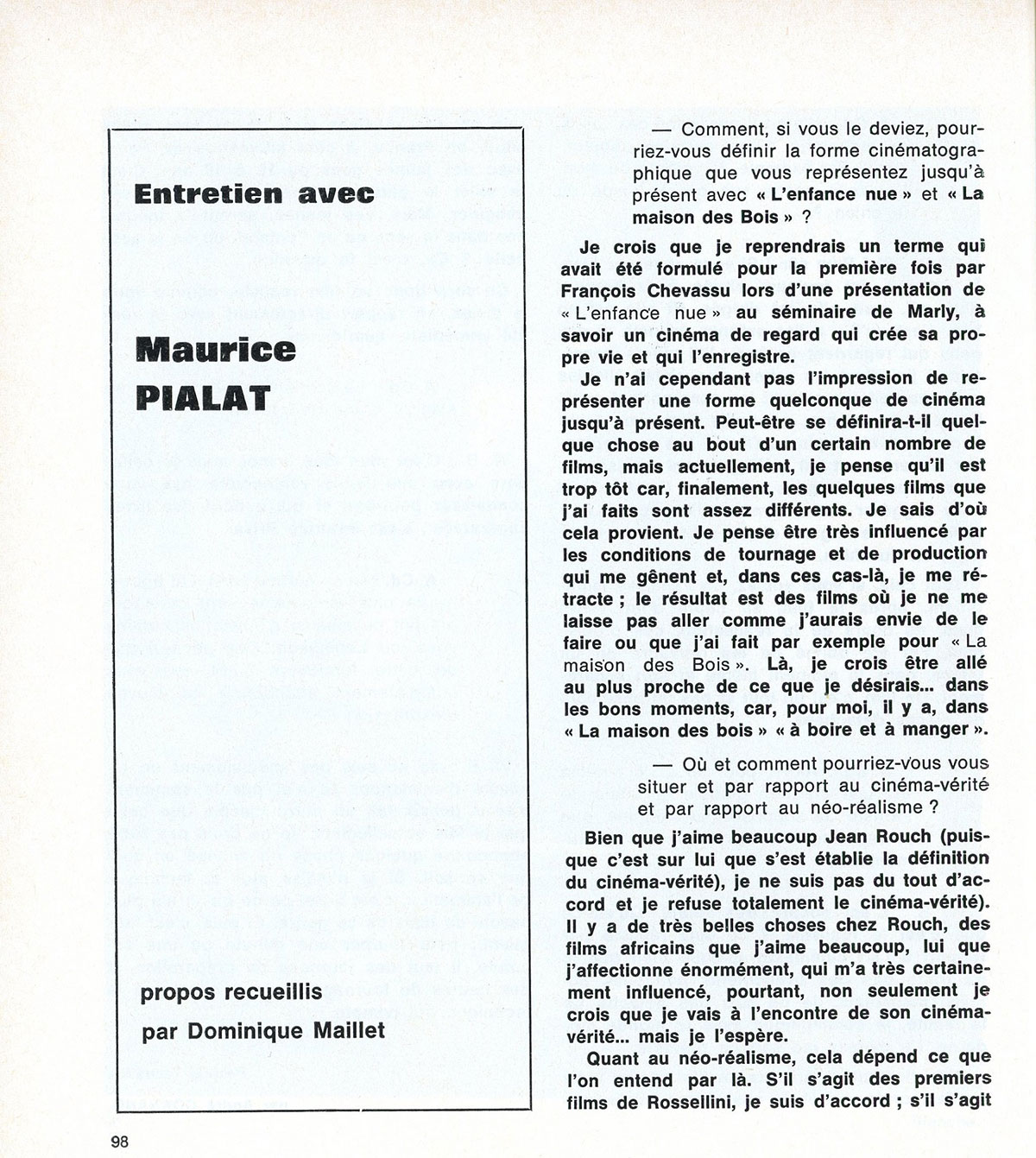 Pialat Entretien avec Maurice Pialat, 1972 Propos recueillis par Dominique Maillet Texte initialement paru dans la revue CINEMA IMAGE ET SON N°258 MARS 1972