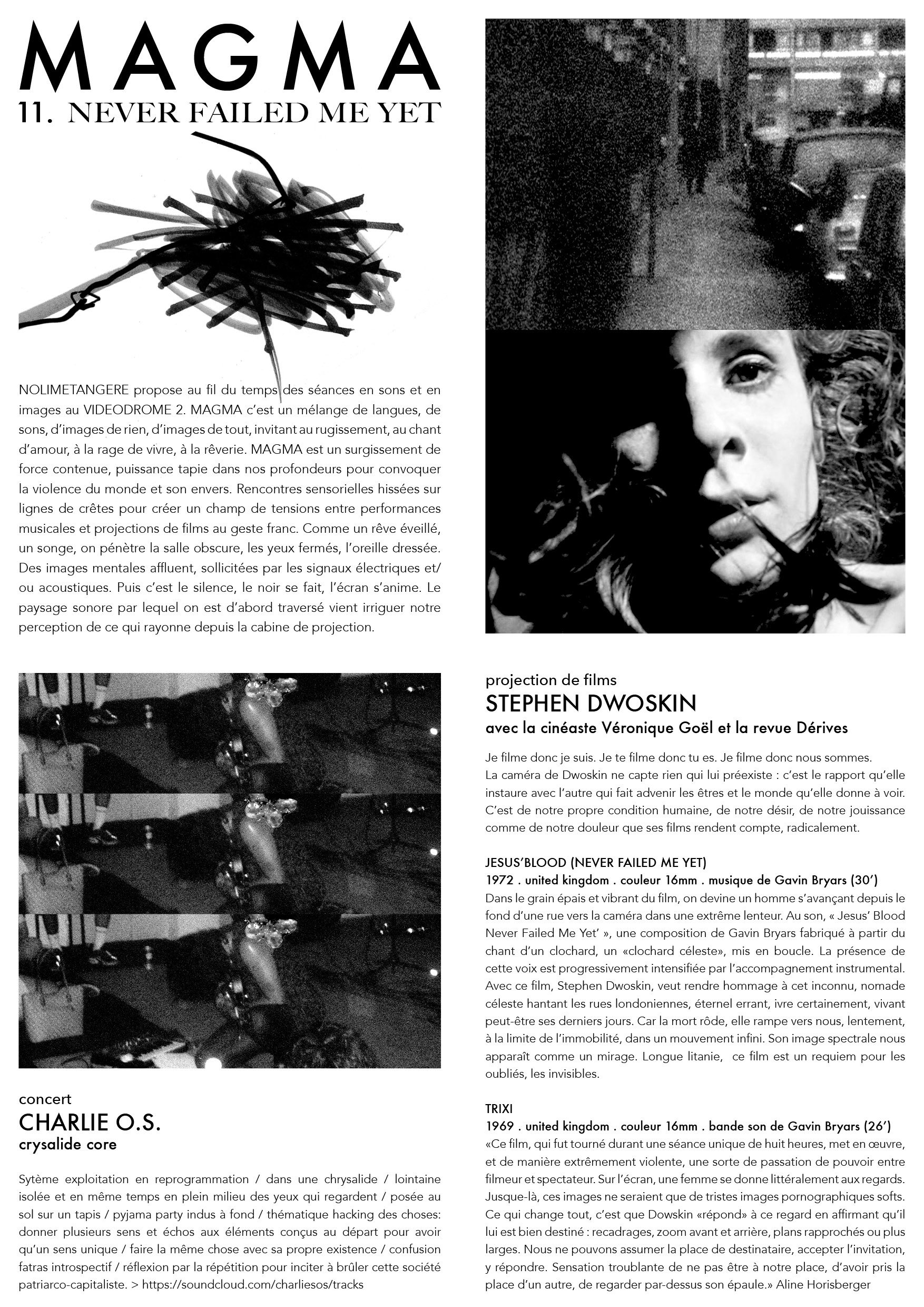 jeudi 26 janvier 2023 à 20h. Magma / Stephen Dwoskin